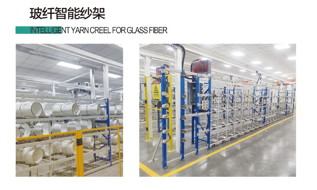 智能纱架是玻璃纤维生产线中的一种设备,用于将玻璃纤维纱线从纱锭或纱筒中解开并拉伸,形成连续的纤维束,以供后续工序使用。
